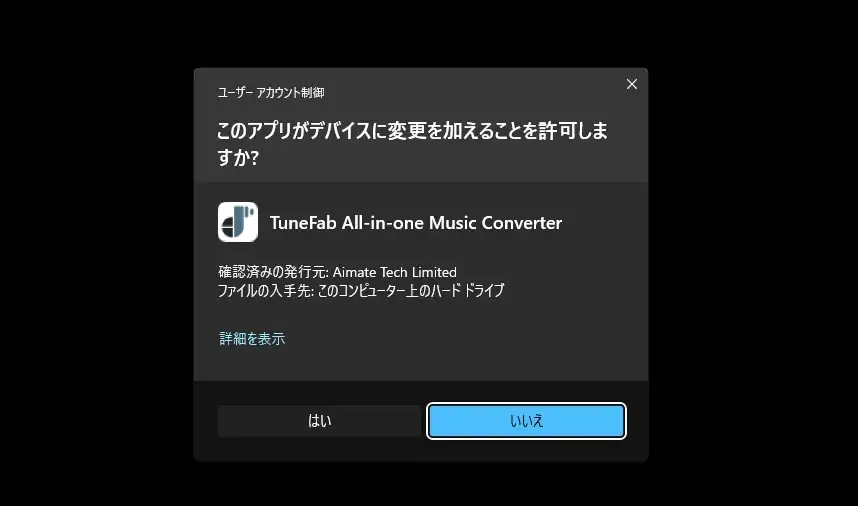 - インストーラーを起動し、ユーザーアカウント制御のプロンプトが表示されたら許可