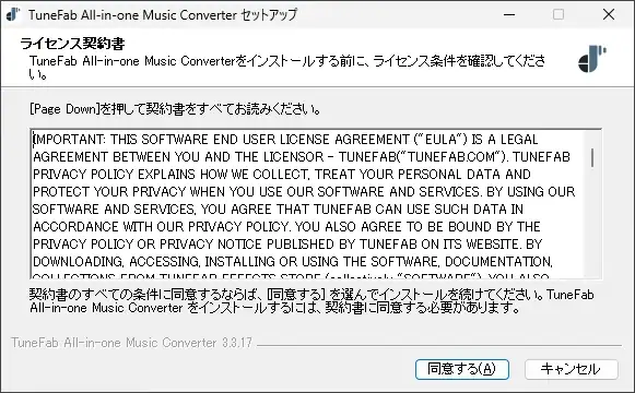- 使用許諾書に問題なければ同意して「同意する」をクリック