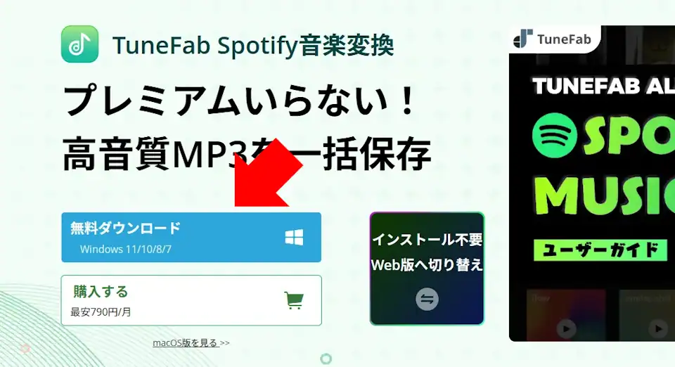 TuneFab Spotify音楽変換には、パソコンにインストールして使用するデスクトップアプリと、ブラウザからアクセスして利用できるウェブアプリが提供されています。
