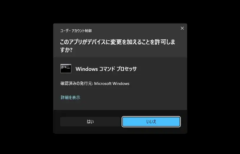 - Windowsコマンドプロセッサの UACが表示されたら許可